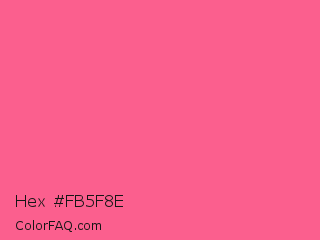 Hex #fb5f8e Color is a light rose color and the nearest color is Strawberry #fc5a8d. Hex code #fb5f8e and RGB value is rgb(251,95,142). In RGB color space, this color is composed of 98% red, 37% green, 56% blue, In CMYK color space, this color is composed of 0% cyan, 62% magenta, 43% yellow , 2% black , In HSL color space, this color has a hue angle of 342° , 95% saturation and 68% lightness.