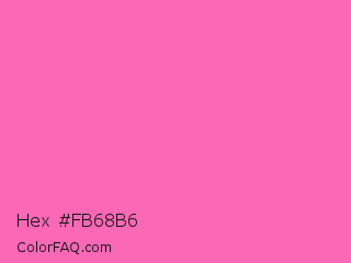 Hex #fb68b6 Color is a light rose color and the nearest color is Hot Pink #ff69b4. Hex code #fb68b6 and RGB value is rgb(251,104,182). In RGB color space, this color is composed of 98% red, 41% green, 71% blue, In CMYK color space, this color is composed of 0% cyan, 59% magenta, 27% yellow , 2% black , In HSL color space, this color has a hue angle of 328° , 95% saturation and 70% lightness.