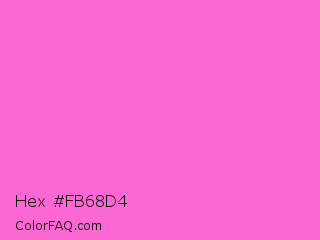Hex #fb68d4 Color is a light magenta color and the nearest color is Rose Pink #ff66cc. Hex code #fb68d4 and RGB value is rgb(251,104,212). In RGB color space, this color is composed of 98% red, 41% green, 83% blue, In CMYK color space, this color is composed of 0% cyan, 59% magenta, 16% yellow , 2% black , In HSL color space, this color has a hue angle of 316° , 95% saturation and 70% lightness.