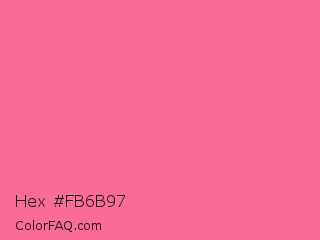 Hex #fb6b97 Color is a light rose color and the nearest color is French Pink #fd6c9e. Hex code #fb6b97 and RGB value is rgb(251,107,151). In RGB color space, this color is composed of 98% red, 42% green, 59% blue, In CMYK color space, this color is composed of 0% cyan, 57% magenta, 40% yellow , 2% black , In HSL color space, this color has a hue angle of 342° , 95% saturation and 70% lightness.