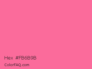 Hex #fb6b9b Color is a light rose color and the nearest color is French Pink #fd6c9e. Hex code #fb6b9b and RGB value is rgb(251,107,155). In RGB color space, this color is composed of 98% red, 42% green, 61% blue, In CMYK color space, this color is composed of 0% cyan, 57% magenta, 38% yellow , 2% black , In HSL color space, this color has a hue angle of 340° , 95% saturation and 70% lightness.