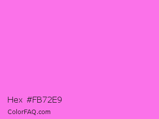 Hex #fb72e9 Color is a light magenta color and the nearest color is Pale Magenta #f984e5. Hex code #fb72e9 and RGB value is rgb(251,114,233). In RGB color space, this color is composed of 98% red, 45% green, 91% blue, In CMYK color space, this color is composed of 0% cyan, 55% magenta, 7% yellow , 2% black , In HSL color space, this color has a hue angle of 308° , 94% saturation and 72% lightness.