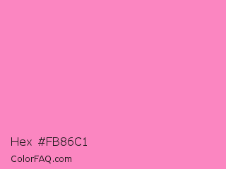 Hex #fb86c1 Color is a light rose color and the nearest color is Persian Pink #f77fbe. Hex code #fb86c1 and RGB value is rgb(251,134,193). In RGB color space, this color is composed of 98% red, 53% green, 76% blue, In CMYK color space, this color is composed of 0% cyan, 47% magenta, 23% yellow , 2% black , In HSL color space, this color has a hue angle of 330° , 94% saturation and 75% lightness.
