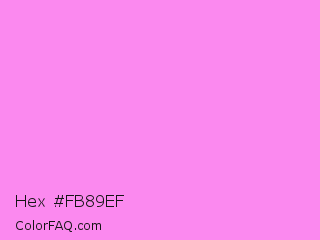 Hex #fb89ef Color is a light magenta color and the nearest color is Light Fuchsia Pink #f984ef. Hex code #fb89ef and RGB value is rgb(251,137,239). In RGB color space, this color is composed of 98% red, 54% green, 94% blue, In CMYK color space, this color is composed of 0% cyan, 45% magenta, 5% yellow , 2% black , In HSL color space, this color has a hue angle of 306° , 93% saturation and 76% lightness.
