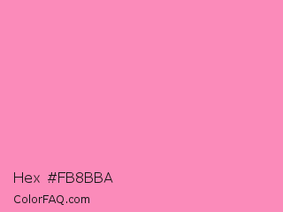 Hex #fb8bba Color is a light rose color and the nearest color is Schauss Pink #ff91af. Hex code #fb8bba and RGB value is rgb(251,139,186). In RGB color space, this color is composed of 98% red, 55% green, 73% blue, In CMYK color space, this color is composed of 0% cyan, 45% magenta, 26% yellow , 2% black , In HSL color space, this color has a hue angle of 335° , 93% saturation and 76% lightness.