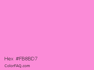 Hex #fb8bd7 Color is a light magenta color and the nearest color is Princess Perfume #ff85cf. Hex code #fb8bd7 and RGB value is rgb(251,139,215). In RGB color space, this color is composed of 98% red, 55% green, 84% blue, In CMYK color space, this color is composed of 0% cyan, 45% magenta, 14% yellow , 2% black , In HSL color space, this color has a hue angle of 319° , 93% saturation and 76% lightness.