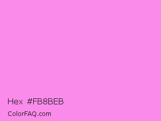 Hex #fb8beb Color is a light magenta color and the nearest color is Light Fuchsia Pink #f984ef. Hex code #fb8beb and RGB value is rgb(251,139,235). In RGB color space, this color is composed of 98% red, 55% green, 92% blue, In CMYK color space, this color is composed of 0% cyan, 45% magenta, 6% yellow , 2% black , In HSL color space, this color has a hue angle of 309° , 93% saturation and 76% lightness.
