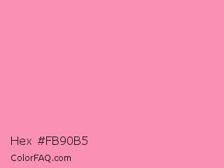 Hex #fb90b5 Color is a light rose color and the nearest color is Schauss Pink #ff91af. Hex code #fb90b5 and RGB value is rgb(251,144,181). In RGB color space, this color is composed of 98% red, 56% green, 71% blue, In CMYK color space, this color is composed of 0% cyan, 43% magenta, 28% yellow , 2% black , In HSL color space, this color has a hue angle of 339° , 93% saturation and 77% lightness.