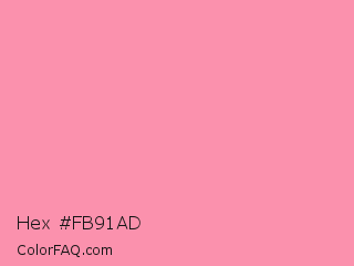 Hex #fb91ad Color is a light rose color and the nearest color is Flamingo Pink #fc8eac. Hex code #fb91ad and RGB value is rgb(251,145,173). In RGB color space, this color is composed of 98% red, 57% green, 68% blue, In CMYK color space, this color is composed of 0% cyan, 42% magenta, 31% yellow , 2% black , In HSL color space, this color has a hue angle of 344° , 93% saturation and 78% lightness.