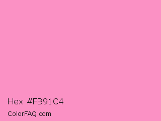Hex #fb91c4 Color is a light rose color and the nearest color is Pastel Magenta #f49ac2. Hex code #fb91c4 and RGB value is rgb(251,145,196). In RGB color space, this color is composed of 98% red, 57% green, 77% blue, In CMYK color space, this color is composed of 0% cyan, 42% magenta, 22% yellow , 2% black , In HSL color space, this color has a hue angle of 331° , 93% saturation and 78% lightness.