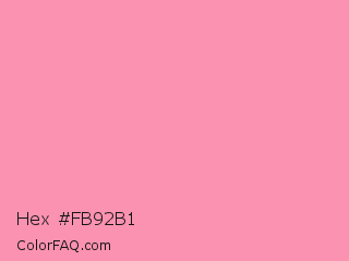 Hex #fb92b1 Color is a light rose color and the nearest color is Schauss Pink #ff91af. Hex code #fb92b1 and RGB value is rgb(251,146,177). In RGB color space, this color is composed of 98% red, 57% green, 69% blue, In CMYK color space, this color is composed of 0% cyan, 42% magenta, 29% yellow , 2% black , In HSL color space, this color has a hue angle of 342° , 93% saturation and 78% lightness.