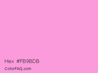 Hex #fb9bdb Color is a light magenta color and the nearest color is Lavender Rose #fba0e3. Hex code #fb9bdb and RGB value is rgb(251,155,219). In RGB color space, this color is composed of 98% red, 61% green, 86% blue, In CMYK color space, this color is composed of 0% cyan, 38% magenta, 13% yellow , 2% black , In HSL color space, this color has a hue angle of 320° , 92% saturation and 80% lightness.