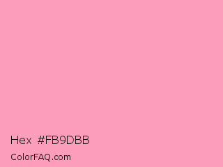 Hex #fb9dbb Color is a light rose color and the nearest color is Amaranth Pink #f19cbb. Hex code #fb9dbb and RGB value is rgb(251,157,187). In RGB color space, this color is composed of 98% red, 62% green, 73% blue, In CMYK color space, this color is composed of 0% cyan, 37% magenta, 25% yellow , 2% black , In HSL color space, this color has a hue angle of 341° , 92% saturation and 80% lightness.