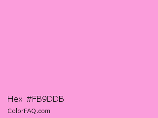 Hex #fb9ddb Color is a light magenta color and the nearest color is Lavender Rose #fba0e3. Hex code #fb9ddb and RGB value is rgb(251,157,219). In RGB color space, this color is composed of 98% red, 62% green, 86% blue, In CMYK color space, this color is composed of 0% cyan, 37% magenta, 13% yellow , 2% black , In HSL color space, this color has a hue angle of 320° , 92% saturation and 80% lightness.