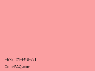 Hex #fb9fa1 Color is a light red color and the nearest color is Sweet Pink #fd9fa2. Hex code #fb9fa1 and RGB value is rgb(251,159,161). In RGB color space, this color is composed of 98% red, 62% green, 63% blue, In CMYK color space, this color is composed of 0% cyan, 37% magenta, 36% yellow , 2% black , In HSL color space, this color has a hue angle of 359° , 92% saturation and 80% lightness.