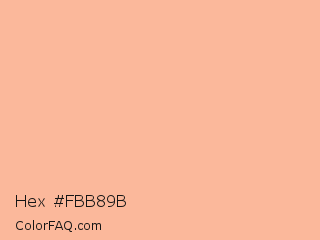 Hex #fbb89b Color is a light orange color and the nearest color is Rose Bud #fbb2a3. Hex code #fbb89b and RGB value is rgb(251,184,155). In RGB color space, this color is composed of 98% red, 72% green, 61% blue, In CMYK color space, this color is composed of 0% cyan, 27% magenta, 38% yellow , 2% black , In HSL color space, this color has a hue angle of 18° , 92% saturation and 80% lightness.