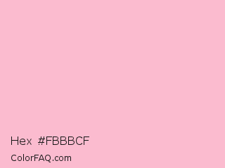 Hex #fbbbcf Color is a very light rose color and the nearest color is Pink #ffc0cb. Hex code #fbbbcf and RGB value is rgb(251,187,207). In RGB color space, this color is composed of 98% red, 73% green, 81% blue, In CMYK color space, this color is composed of 0% cyan, 25% magenta, 18% yellow , 2% black , In HSL color space, this color has a hue angle of 341° , 89% saturation and 86% lightness.