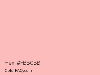 Hex #fbbcbb Color is a very light red color and the nearest color is Spanish Pink #f7bfbe. Hex code #fbbcbb and RGB value is rgb(251,188,187). In RGB color space, this color is composed of 98% red, 74% green, 73% blue, In CMYK color space, this color is composed of 0% cyan, 25% magenta, 25% yellow , 2% black , In HSL color space, this color has a hue angle of 1° , 89% saturation and 86% lightness.