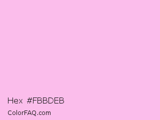 Hex #fbbdeb Color is a very light magenta color and the nearest color is Chantilly #f8c3df. Hex code #fbbdeb and RGB value is rgb(251,189,235). In RGB color space, this color is composed of 98% red, 74% green, 92% blue, In CMYK color space, this color is composed of 0% cyan, 25% magenta, 6% yellow , 2% black , In HSL color space, this color has a hue angle of 315° , 89% saturation and 86% lightness.