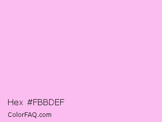 Hex #fbbdef Color is a very light magenta color and the nearest color is Classic Rose #fbcce7. Hex code #fbbdef and RGB value is rgb(251,189,239). In RGB color space, this color is composed of 98% red, 74% green, 94% blue, In CMYK color space, this color is composed of 0% cyan, 25% magenta, 5% yellow , 2% black , In HSL color space, this color has a hue angle of 312° , 89% saturation and 86% lightness.