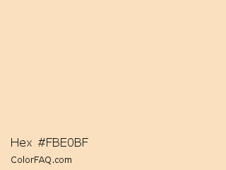 Hex #fbe0bf Color is a very light orange color and the nearest color is Very Pale Orange #ffdfbf. Hex code #fbe0bf and RGB value is rgb(251,224,191). In RGB color space, this color is composed of 98% red, 88% green, 75% blue, In CMYK color space, this color is composed of 0% cyan, 11% magenta, 24% yellow , 2% black , In HSL color space, this color has a hue angle of 33° , 88% saturation and 87% lightness.