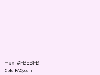 Hex #fbebfb Color is a almost white magenta color and the nearest color is Tutu #fff1f9. Hex code #fbebfb and RGB value is rgb(251,235,251). In RGB color space, this color is composed of 98% red, 92% green, 98% blue, In CMYK color space, this color is composed of 0% cyan, 6% magenta, 0% yellow , 2% black , In HSL color space, this color has a hue angle of 300° , 67% saturation and 95% lightness.