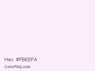 Hex #fbeefa Color is a almost white magenta color and the nearest color is Tutu #fff1f9. Hex code #fbeefa and RGB value is rgb(251,238,250). In RGB color space, this color is composed of 98% red, 93% green, 98% blue, In CMYK color space, this color is composed of 0% cyan, 5% magenta, 0% yellow , 2% black , In HSL color space, this color has a hue angle of 305° , 62% saturation and 96% lightness.