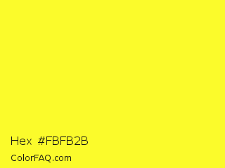 Hex #fbfb2b Color is a normal yellow color and the nearest color is Daffodil #ffff31. Hex code #fbfb2b and RGB value is rgb(251,251,43). In RGB color space, this color is composed of 98% red, 98% green, 17% blue, In CMYK color space, this color is composed of 0% cyan, 0% magenta, 83% yellow , 2% black , In HSL color space, this color has a hue angle of 60° , 96% saturation and 58% lightness.