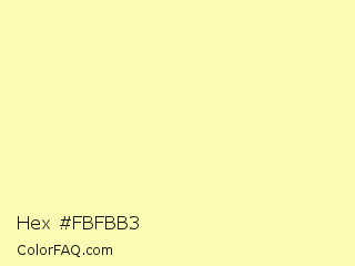 Hex #fbfbb3 Color is a very light yellow color and the nearest color is Portafino #ffffb4. Hex code #fbfbb3 and RGB value is rgb(251,251,179). In RGB color space, this color is composed of 98% red, 98% green, 70% blue, In CMYK color space, this color is composed of 0% cyan, 0% magenta, 29% yellow , 2% black , In HSL color space, this color has a hue angle of 60° , 90% saturation and 84% lightness.