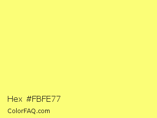 Hex #fbfe77 Color is a light yellow color and the nearest color is Paris Daisy #fff46e. Hex code #fbfe77 and RGB value is rgb(251,254,119). In RGB color space, this color is composed of 98% red, 100% green, 47% blue, In CMYK color space, this color is composed of 1% cyan, 0% magenta, 53% yellow , 0% black , In HSL color space, this color has a hue angle of 61° , 99% saturation and 73% lightness.