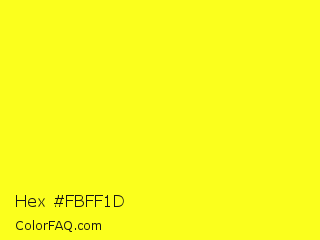 Hex #fbff1d Color is a normal yellow color and the nearest color is Daffodil #ffff31. Hex code #fbff1d and RGB value is rgb(251,255,29). In RGB color space, this color is composed of 98% red, 100% green, 11% blue, In CMYK color space, this color is composed of 2% cyan, 0% magenta, 89% yellow , 0% black , In HSL color space, this color has a hue angle of 61° , 100% saturation and 56% lightness.