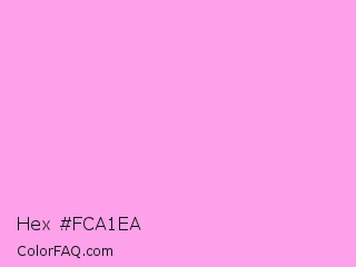 Hex #fca1ea Color is a very light magenta color and the nearest color is Lavender Rose #fba0e3. Hex code #fca1ea and RGB value is rgb(252,161,234). In RGB color space, this color is composed of 99% red, 63% green, 92% blue, In CMYK color space, this color is composed of 0% cyan, 36% magenta, 7% yellow , 1% black , In HSL color space, this color has a hue angle of 312° , 94% saturation and 81% lightness.