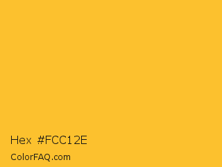 Hex #fcc12e Color is a normal orange color and the nearest color is Saffron #f4c430. Hex code #fcc12e and RGB value is rgb(252,193,46). In RGB color space, this color is composed of 99% red, 76% green, 18% blue, In CMYK color space, this color is composed of 0% cyan, 23% magenta, 82% yellow , 1% black , In HSL color space, this color has a hue angle of 43° , 97% saturation and 58% lightness.