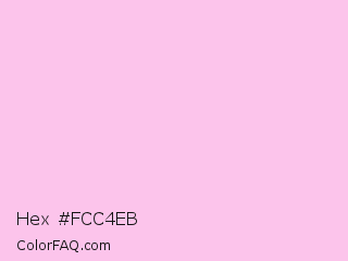 Hex #fcc4eb Color is a very light magenta color and the nearest color is Classic Rose #fbcce7. Hex code #fcc4eb and RGB value is rgb(252,196,235). In RGB color space, this color is composed of 99% red, 77% green, 92% blue, In CMYK color space, this color is composed of 0% cyan, 22% magenta, 7% yellow , 1% black , In HSL color space, this color has a hue angle of 318° , 90% saturation and 88% lightness.