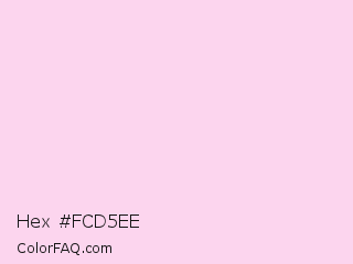 Hex #fcd5ee Color is a very light magenta color and the nearest color is Shampoo #ffcff1. Hex code #fcd5ee and RGB value is rgb(252,213,238). In RGB color space, this color is composed of 99% red, 84% green, 93% blue, In CMYK color space, this color is composed of 0% cyan, 15% magenta, 6% yellow , 1% black , In HSL color space, this color has a hue angle of 322° , 87% saturation and 91% lightness.