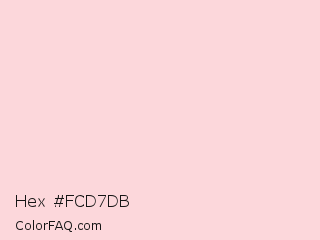 Hex #fcd7db Color is a very light red color and the nearest color is Cosmos #ffd8d9. Hex code #fcd7db and RGB value is rgb(252,215,219). In RGB color space, this color is composed of 99% red, 84% green, 86% blue, In CMYK color space, this color is composed of 0% cyan, 15% magenta, 13% yellow , 1% black , In HSL color space, this color has a hue angle of 354° , 86% saturation and 92% lightness.