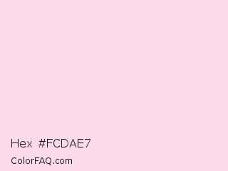 Hex #fcdae7 Color is a very light rose color and the nearest color is Piggy Pink #fddde6. Hex code #fcdae7 and RGB value is rgb(252,218,231). In RGB color space, this color is composed of 99% red, 85% green, 91% blue, In CMYK color space, this color is composed of 0% cyan, 13% magenta, 8% yellow , 1% black , In HSL color space, this color has a hue angle of 337° , 85% saturation and 92% lightness.