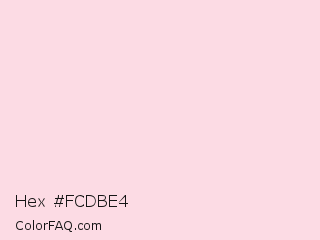 Hex #fcdbe4 Color is a very light rose color and the nearest color is Piggy Pink #fddde6. Hex code #fcdbe4 and RGB value is rgb(252,219,228). In RGB color space, this color is composed of 99% red, 86% green, 89% blue, In CMYK color space, this color is composed of 0% cyan, 13% magenta, 10% yellow , 1% black , In HSL color space, this color has a hue angle of 344° , 85% saturation and 92% lightness.