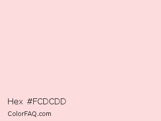 Hex #fcdcdd Color is a very light red color and the nearest color is Pale Pink #fadadd. Hex code #fcdcdd and RGB value is rgb(252,220,221). In RGB color space, this color is composed of 99% red, 86% green, 87% blue, In CMYK color space, this color is composed of 0% cyan, 13% magenta, 12% yellow , 1% black , In HSL color space, this color has a hue angle of 358° , 84% saturation and 93% lightness.