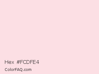 Hex #fcdfe4 Color is a very light red color and the nearest color is Piggy Pink #fddde6. Hex code #fcdfe4 and RGB value is rgb(252,223,228). In RGB color space, this color is composed of 99% red, 87% green, 89% blue, In CMYK color space, this color is composed of 0% cyan, 12% magenta, 10% yellow , 1% black , In HSL color space, this color has a hue angle of 350° , 83% saturation and 93% lightness.