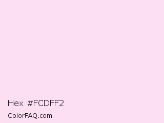 Hex #fcdff2 Color is a very light magenta color and the nearest color is Pale Rose #ffe1f2. Hex code #fcdff2 and RGB value is rgb(252,223,242). In RGB color space, this color is composed of 99% red, 87% green, 95% blue, In CMYK color space, this color is composed of 0% cyan, 12% magenta, 4% yellow , 1% black , In HSL color space, this color has a hue angle of 321° , 83% saturation and 93% lightness.