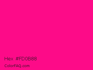 Hex #fd0b88 Color is a normal rose color and the nearest color is Magenta Process #ff0090. Hex code #fd0b88 and RGB value is rgb(253,11,136). In RGB color space, this color is composed of 99% red, 4% green, 53% blue, In CMYK color space, this color is composed of 0% cyan, 96% magenta, 46% yellow , 1% black , In HSL color space, this color has a hue angle of 329° , 98% saturation and 52% lightness.