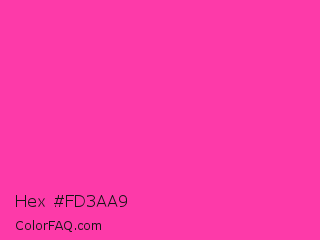 Hex #fd3aa9 Color is a light magenta color and the nearest color is Wild Strawberry #ff43a4. Hex code #fd3aa9 and RGB value is rgb(253,58,169). In RGB color space, this color is composed of 99% red, 23% green, 66% blue, In CMYK color space, this color is composed of 0% cyan, 77% magenta, 33% yellow , 1% black , In HSL color space, this color has a hue angle of 326° , 98% saturation and 61% lightness.