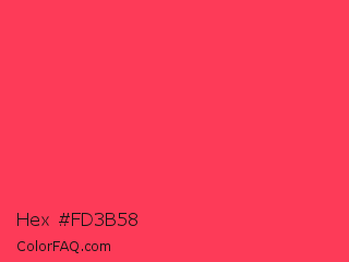Hex #fd3b58 Color is a light red color and the nearest color is Sizzling Red #ff3855. Hex code #fd3b58 and RGB value is rgb(253,59,88). In RGB color space, this color is composed of 99% red, 23% green, 35% blue, In CMYK color space, this color is composed of 0% cyan, 77% magenta, 65% yellow , 1% black , In HSL color space, this color has a hue angle of 351° , 98% saturation and 61% lightness.