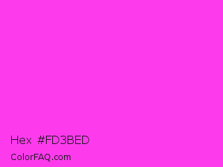 Hex #fd3bed Color is a light magenta color and the nearest color is Purple Pizzazz #fe4eda. Hex code #fd3bed and RGB value is rgb(253,59,237). In RGB color space, this color is composed of 99% red, 23% green, 93% blue, In CMYK color space, this color is composed of 0% cyan, 77% magenta, 6% yellow , 1% black , In HSL color space, this color has a hue angle of 305° , 98% saturation and 61% lightness.