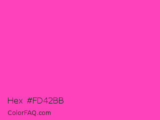 Hex #fd42bb Color is a light magenta color and the nearest color is Razzle Dazzle Rose #ff33cc. Hex code #fd42bb and RGB value is rgb(253,66,187). In RGB color space, this color is composed of 99% red, 26% green, 73% blue, In CMYK color space, this color is composed of 0% cyan, 74% magenta, 26% yellow , 1% black , In HSL color space, this color has a hue angle of 321° , 98% saturation and 63% lightness.