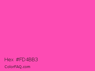 Hex #fd4bb3 Color is a light magenta color and the nearest color is Brilliant Rose #f653a6. Hex code #fd4bb3 and RGB value is rgb(253,75,179). In RGB color space, this color is composed of 99% red, 29% green, 70% blue, In CMYK color space, this color is composed of 0% cyan, 70% magenta, 29% yellow , 1% black , In HSL color space, this color has a hue angle of 325° , 98% saturation and 64% lightness.