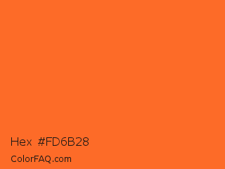Hex #fd6b28 Color is a normal orange color and the nearest color is Orange #ff681f. Hex code #fd6b28 and RGB value is rgb(253,107,40). In RGB color space, this color is composed of 99% red, 42% green, 16% blue, In CMYK color space, this color is composed of 0% cyan, 58% magenta, 84% yellow , 1% black , In HSL color space, this color has a hue angle of 19° , 98% saturation and 57% lightness.