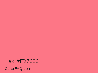 Hex #fd7686 Color is a light red color and the nearest color is Froly #f57584. Hex code #fd7686 and RGB value is rgb(253,118,134). In RGB color space, this color is composed of 99% red, 46% green, 53% blue, In CMYK color space, this color is composed of 0% cyan, 53% magenta, 47% yellow , 1% black , In HSL color space, this color has a hue angle of 353° , 97% saturation and 73% lightness.