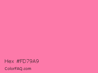 Hex #fd79a9 Color is a light rose color and the nearest color is Tickle Me Pink Crayola #fc80a5. Hex code #fd79a9 and RGB value is rgb(253,121,169). In RGB color space, this color is composed of 99% red, 47% green, 66% blue, In CMYK color space, this color is composed of 0% cyan, 52% magenta, 33% yellow , 1% black , In HSL color space, this color has a hue angle of 338° , 97% saturation and 73% lightness.